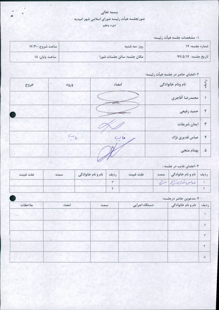 گزارش جلسه شماره ۹۳ هیئت رئیسه شورای اسلامی شهر امیدیه