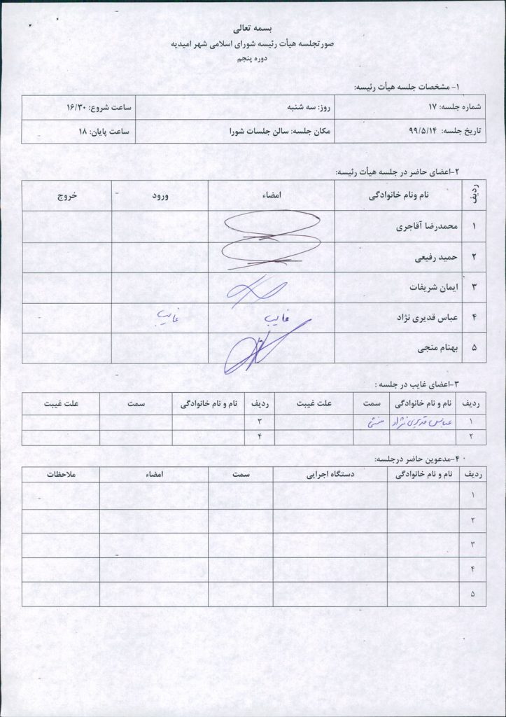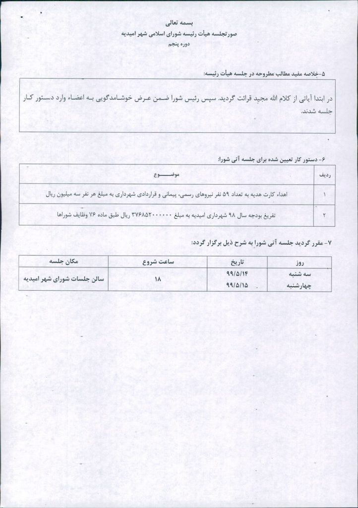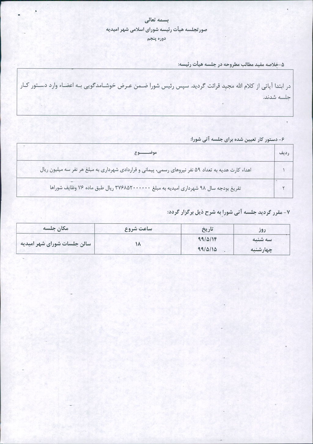 گزارش جلسه شماره ۹۴ هیئت رئیسه شورای اسلامی شهر امیدیه