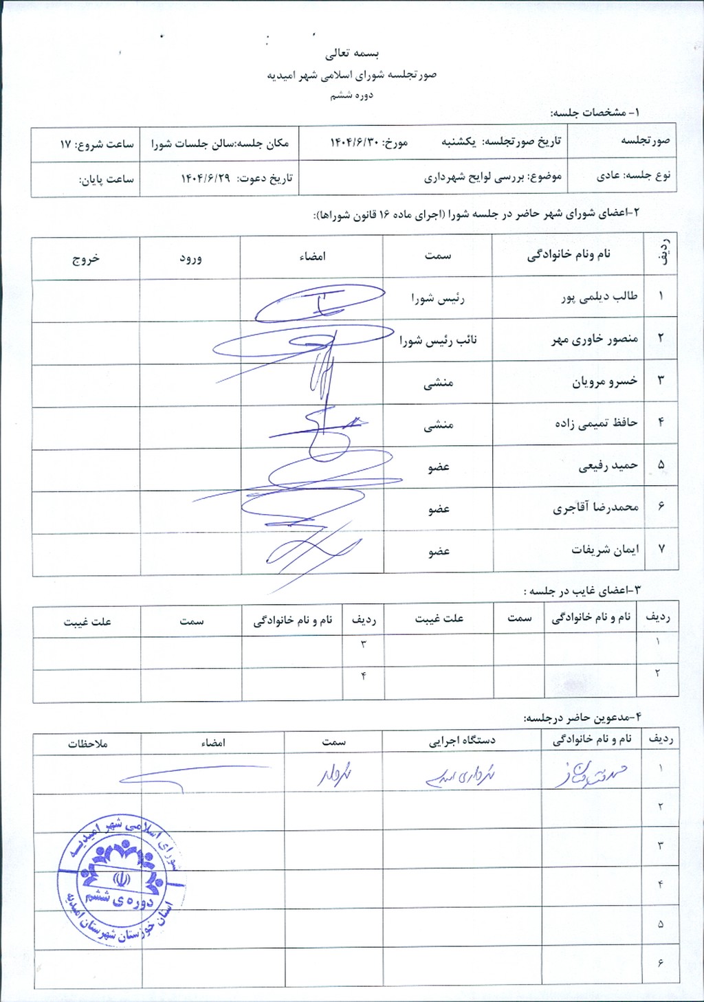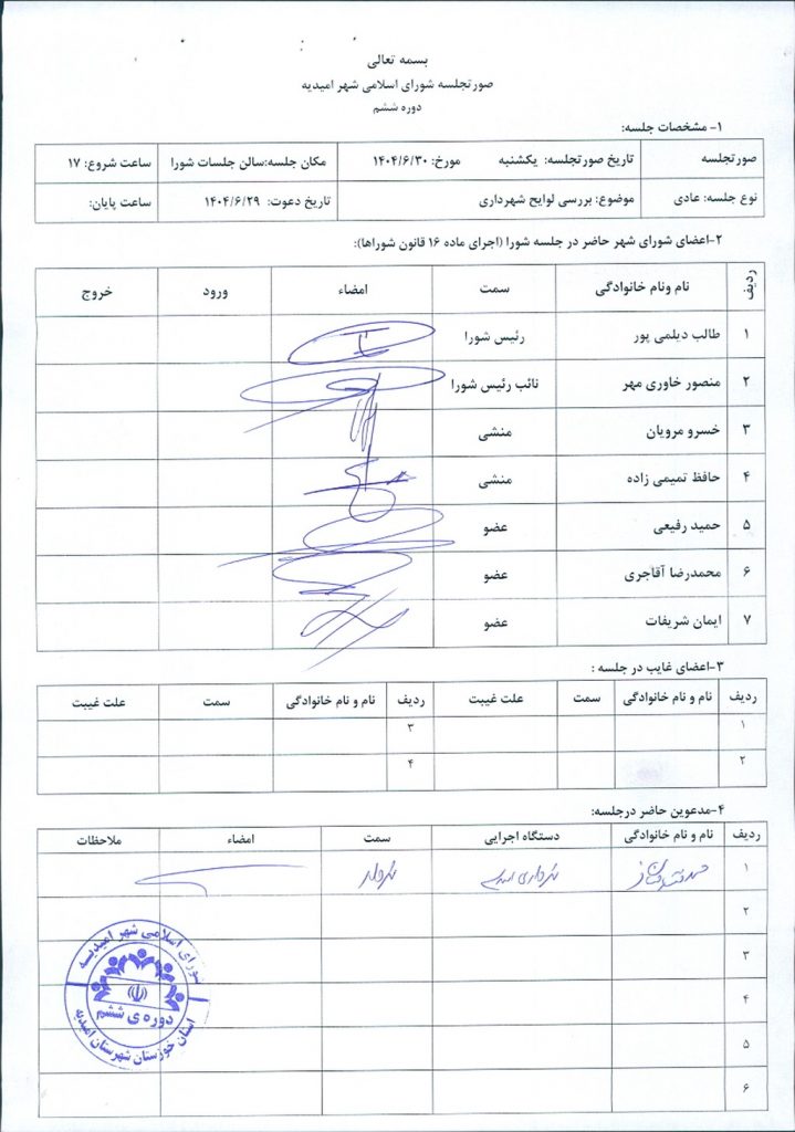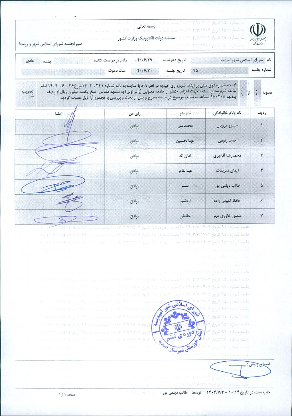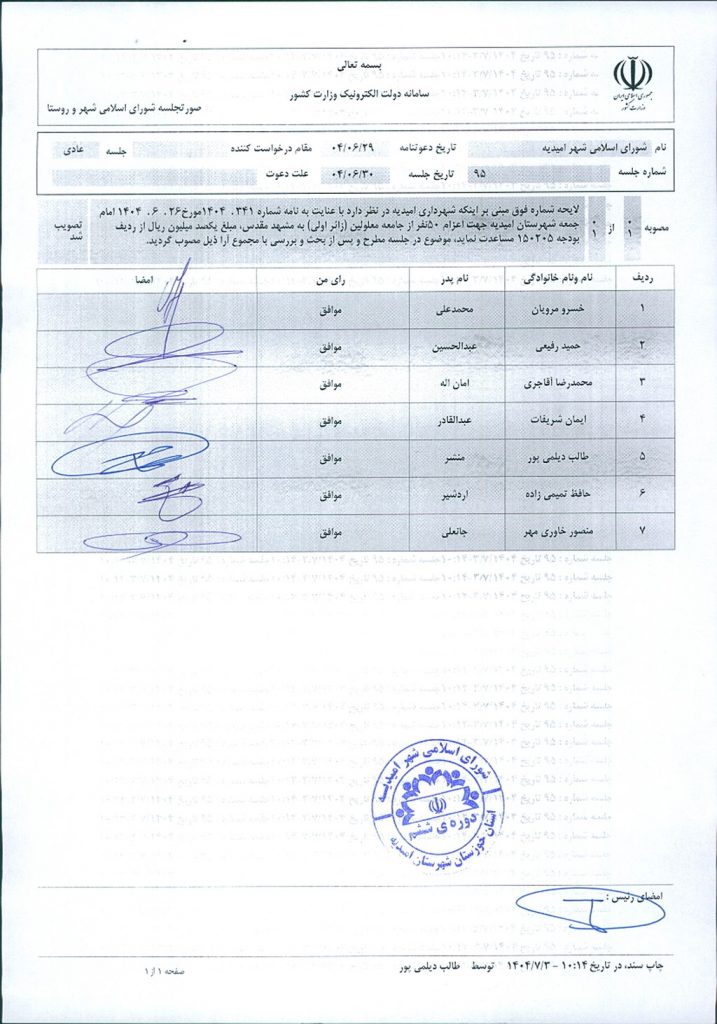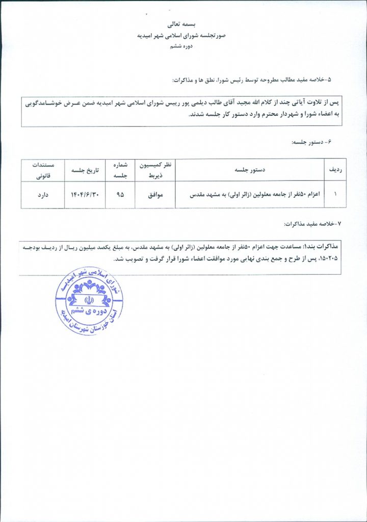 گزارش جلسه شماره ۹۵ شورای اسلامی شهر امیدیه
