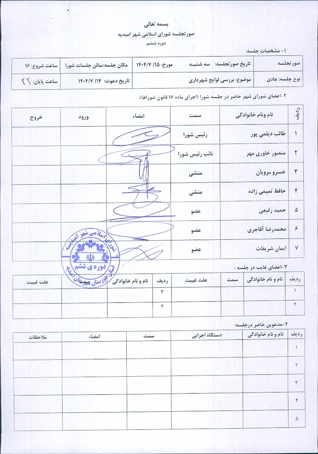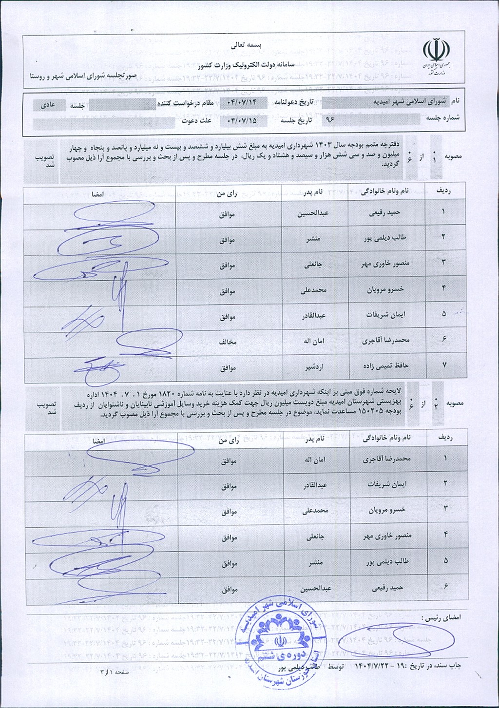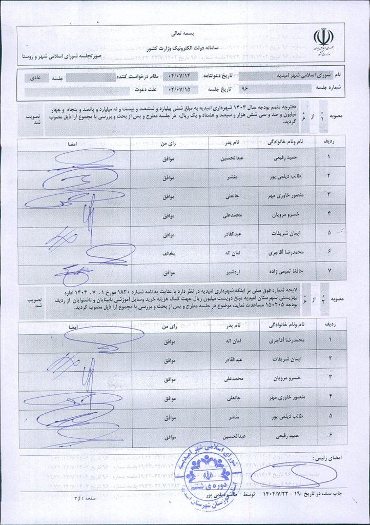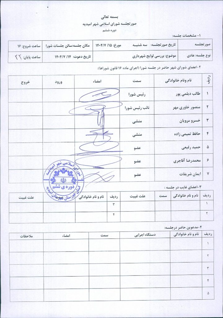 گزارش جلسه شماره ۹۶ شورای اسلامی شهر امیدیه