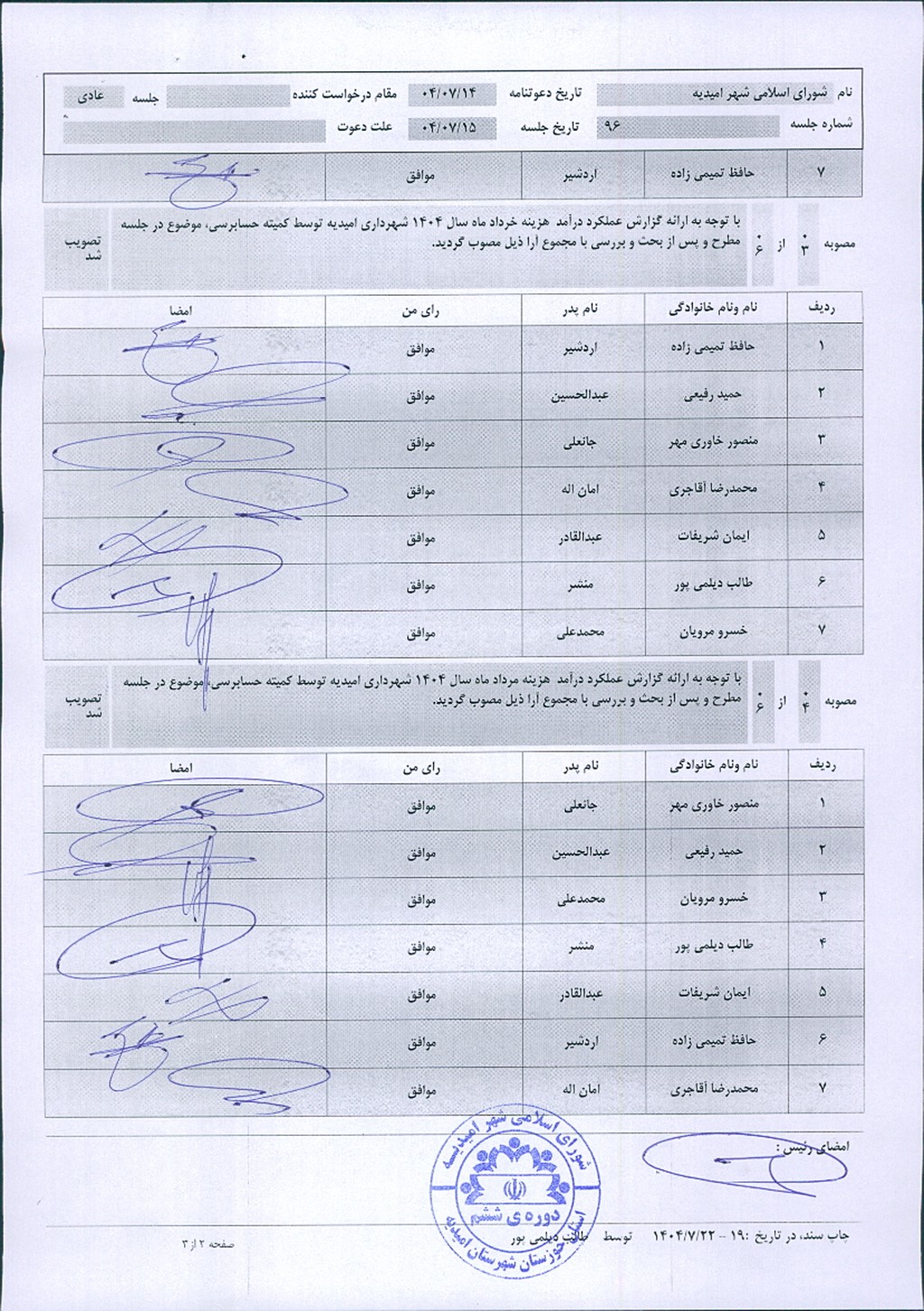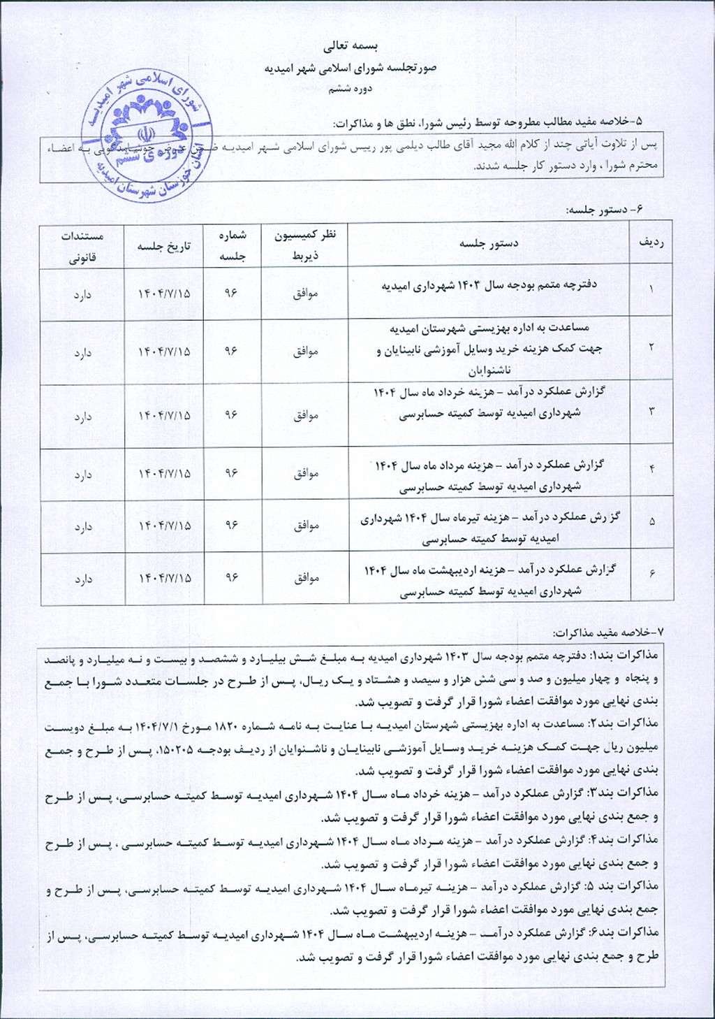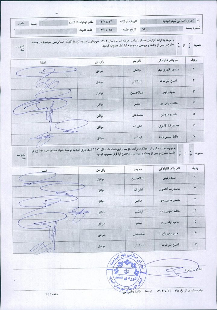 گزارش عملکرد درآمد – هزینه خرداد ماه سال ۱۴۰۴ شهرداری امیدیه توسط کمیته حسابرسی
