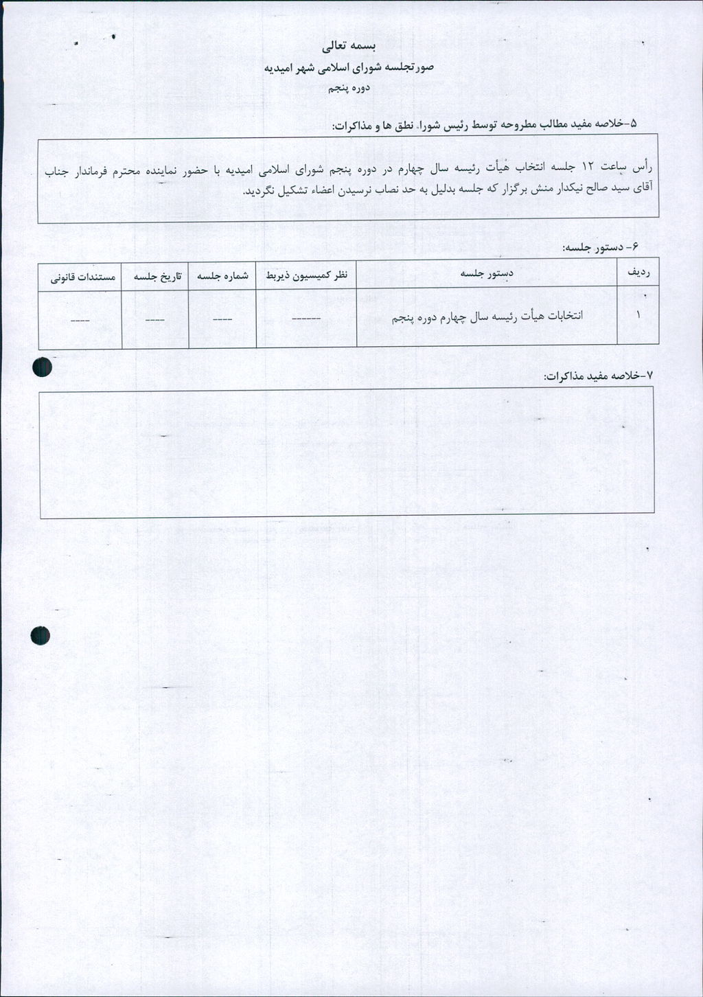 ۱-انتخابات هیأت رئیسه سال چهارم دوره پنجم
