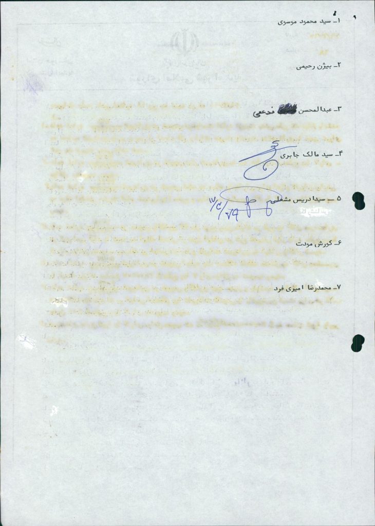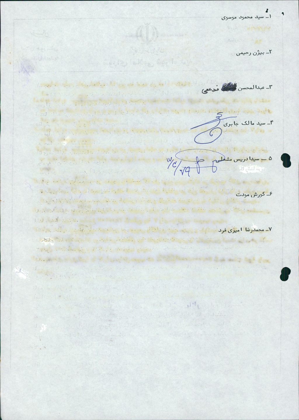 ۱-بیژن رحیمی ۲-کورش مودت ۳-سید ادریس مشعلی ۴-عبدالمحسن فدعمی ۵- سید مالک جابری ۶- محمدرضا امیری فرد