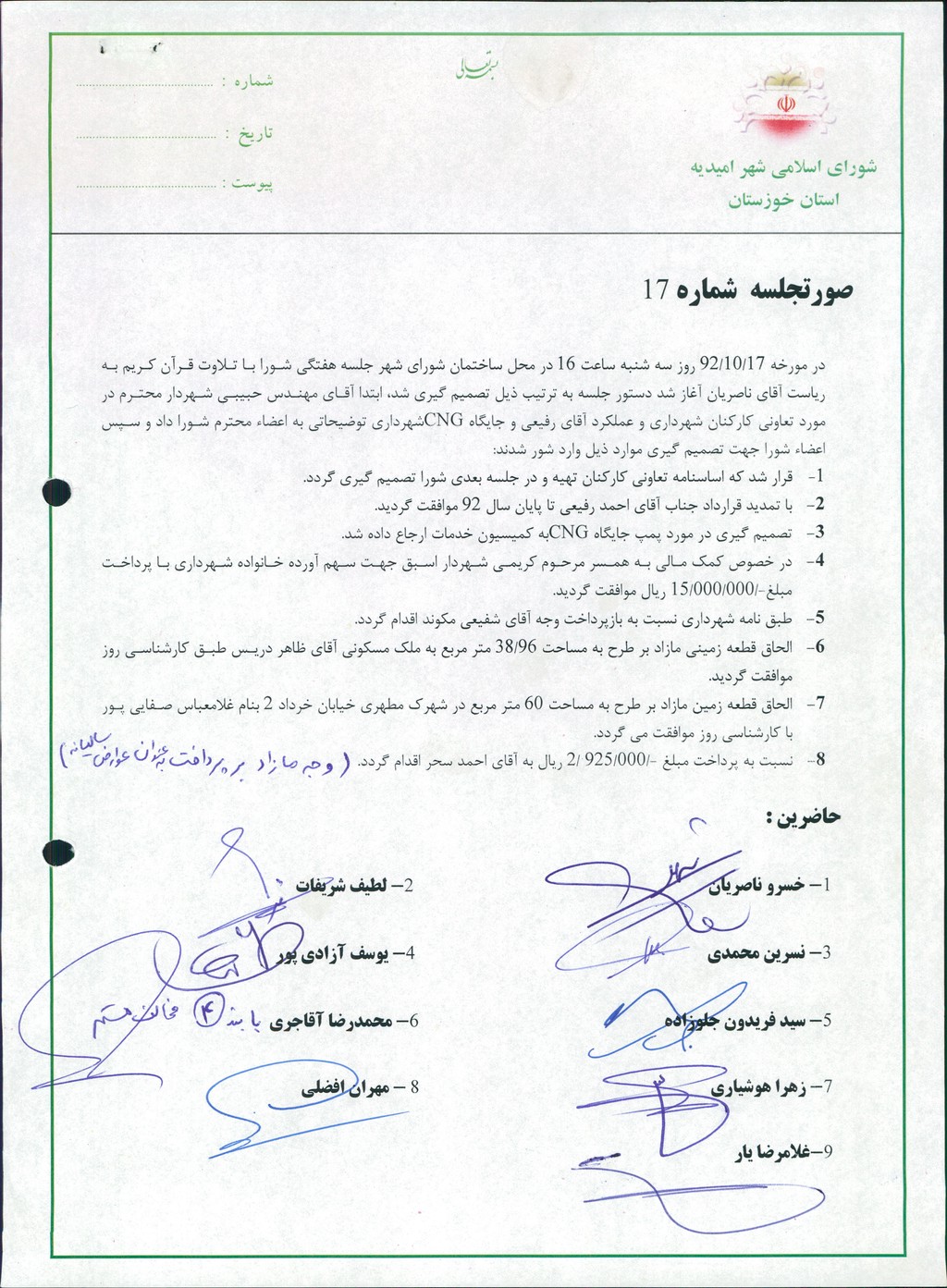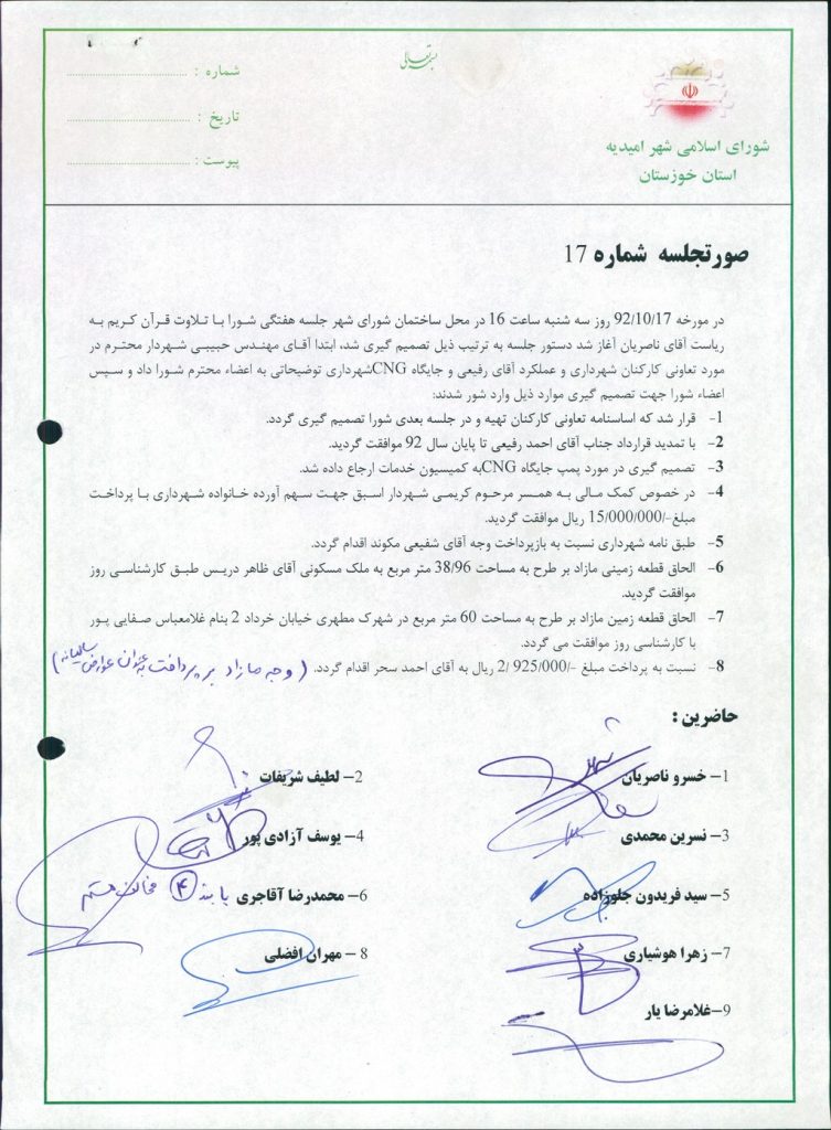 گزارش جلسه شماره ۱۷ شورای اسلامی شهر امیدیه