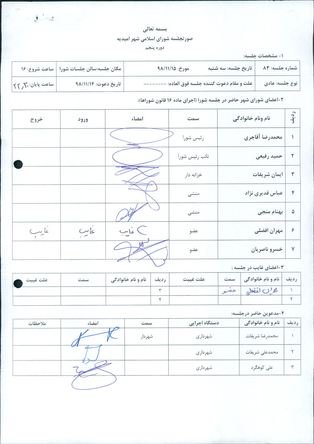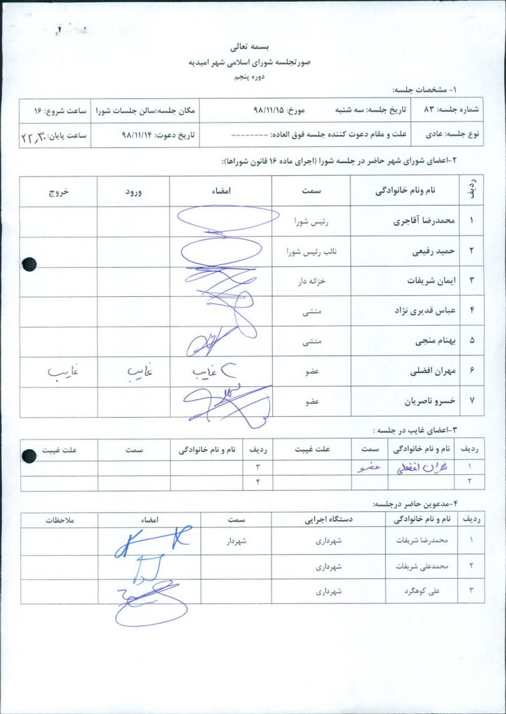 گزارش جلسه شماره ۸۳ شورای اسلامی شهر امیدیه