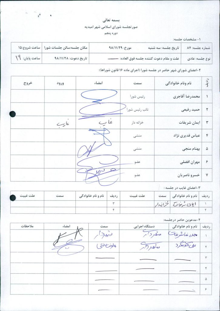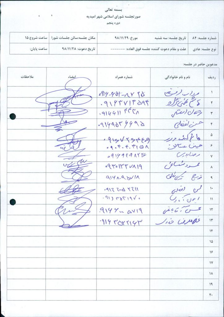 گزارش جلسه شماره ۸۴ شورای اسلامی شهر امیدیه