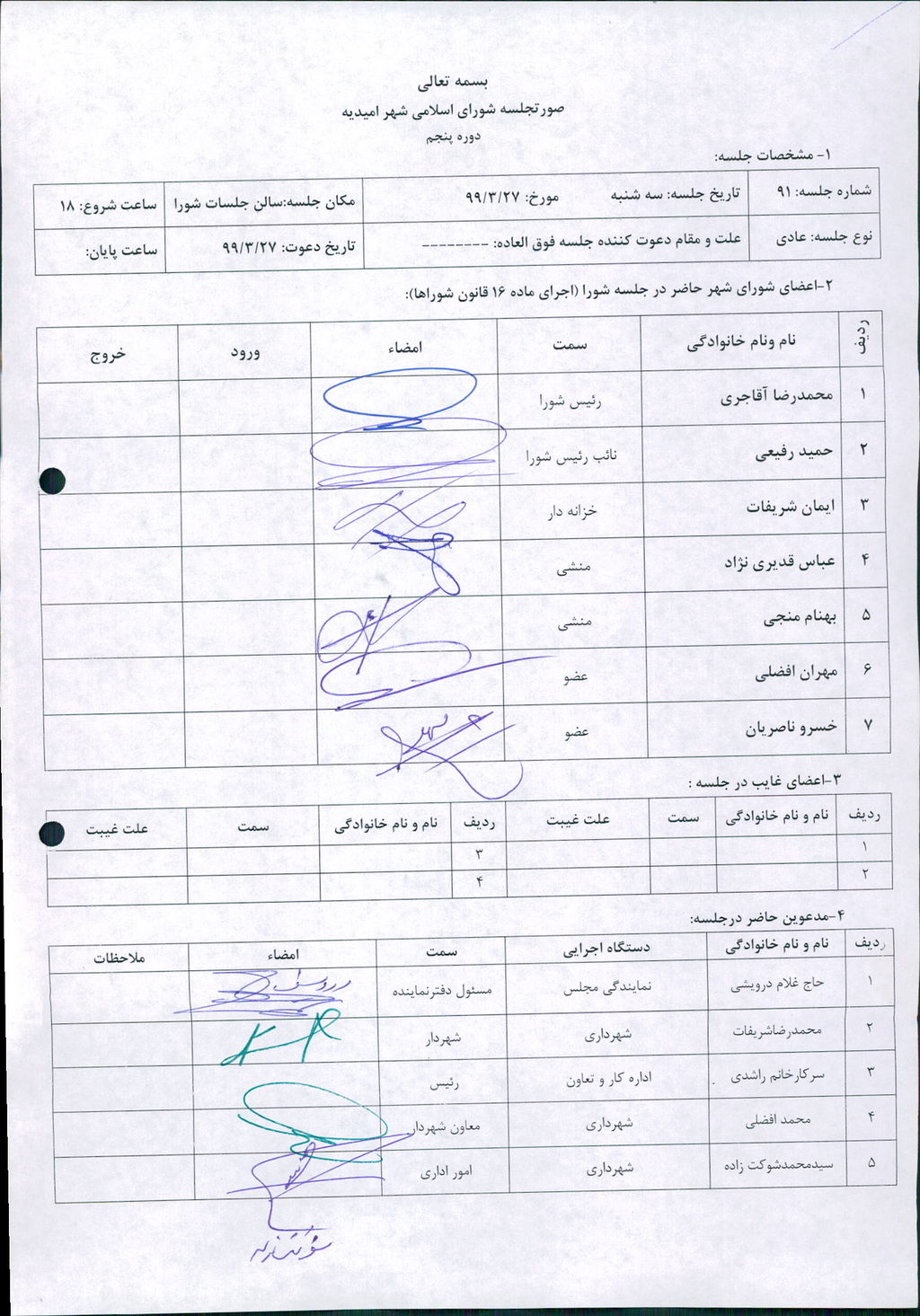 گزارش جلسه شماره ۹۱ شورای اسلامی شهر امیدیه