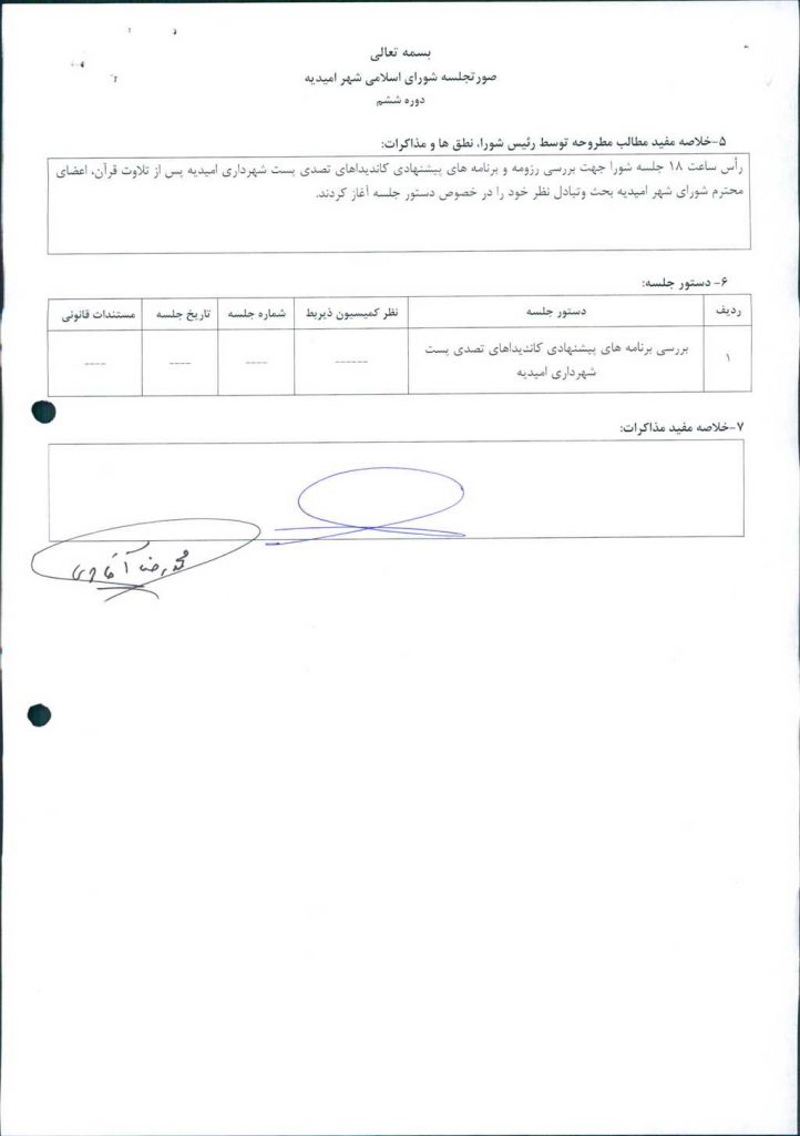 بررسی برنامه های پیشنهادی کاندیداهای تصدی پست شهرداری امیدیه