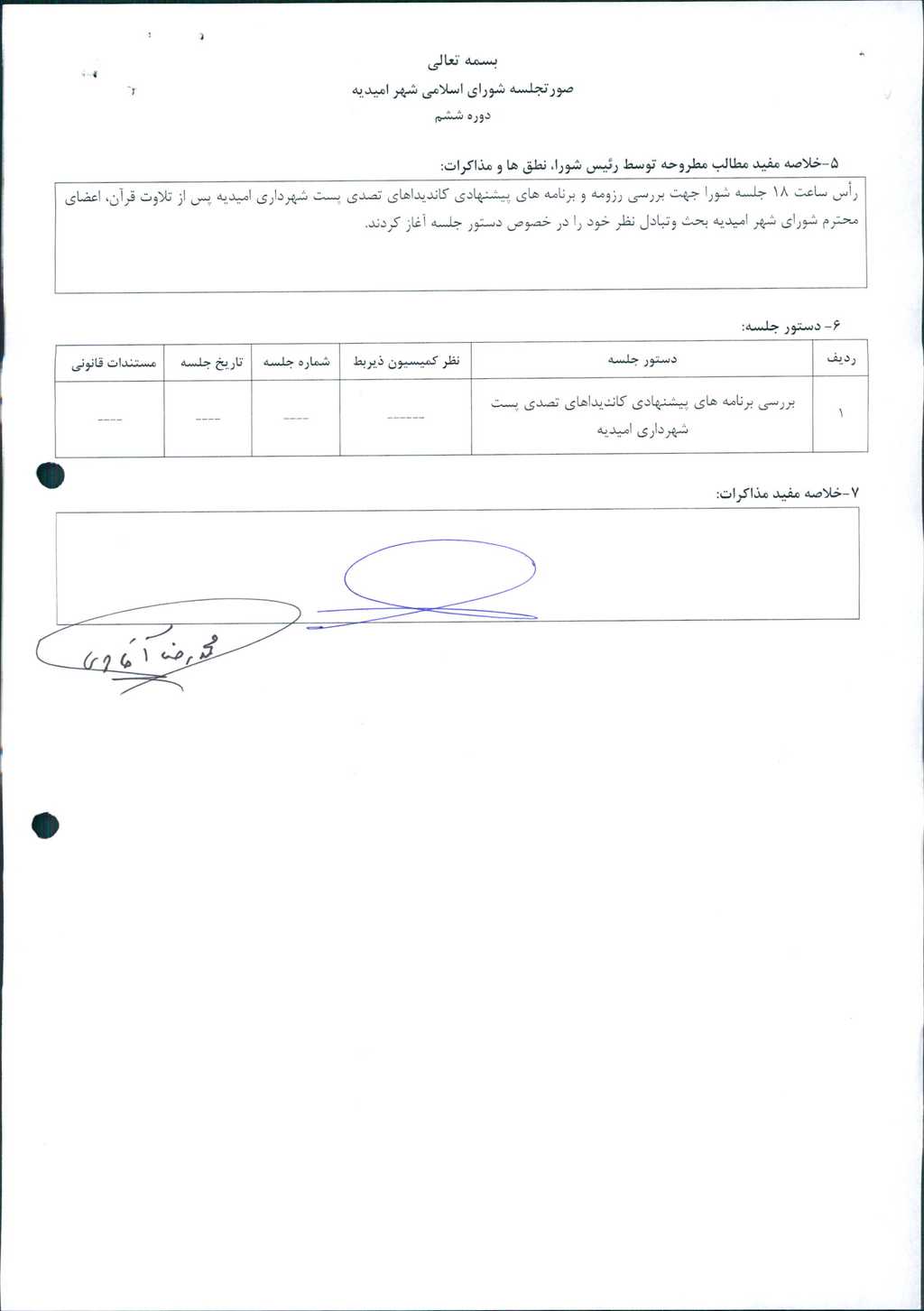 – دستور جلسه: