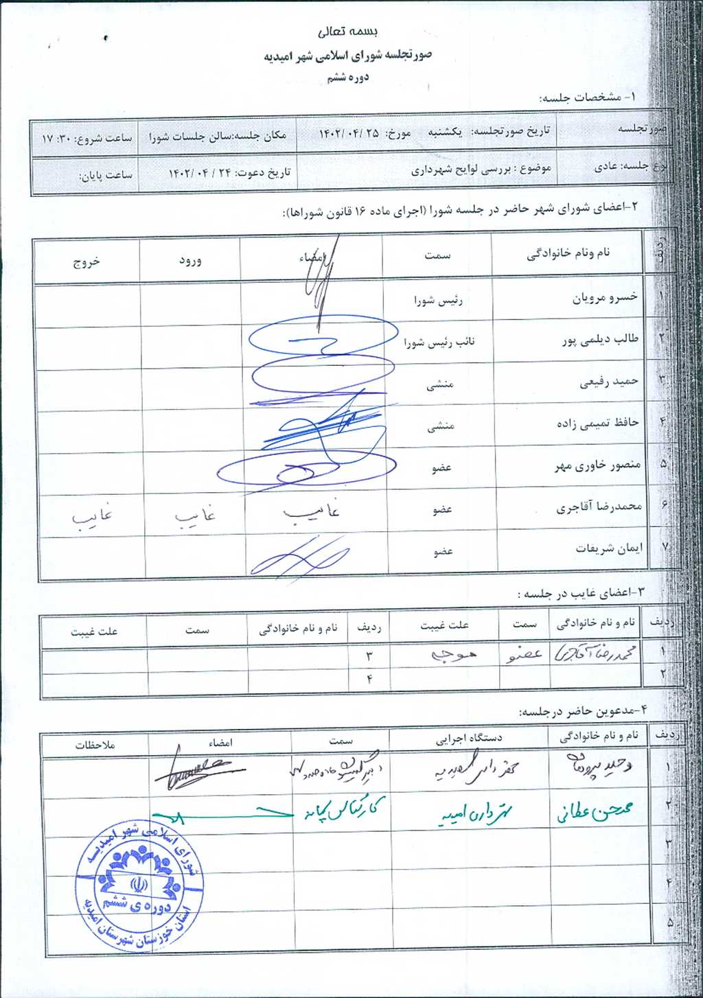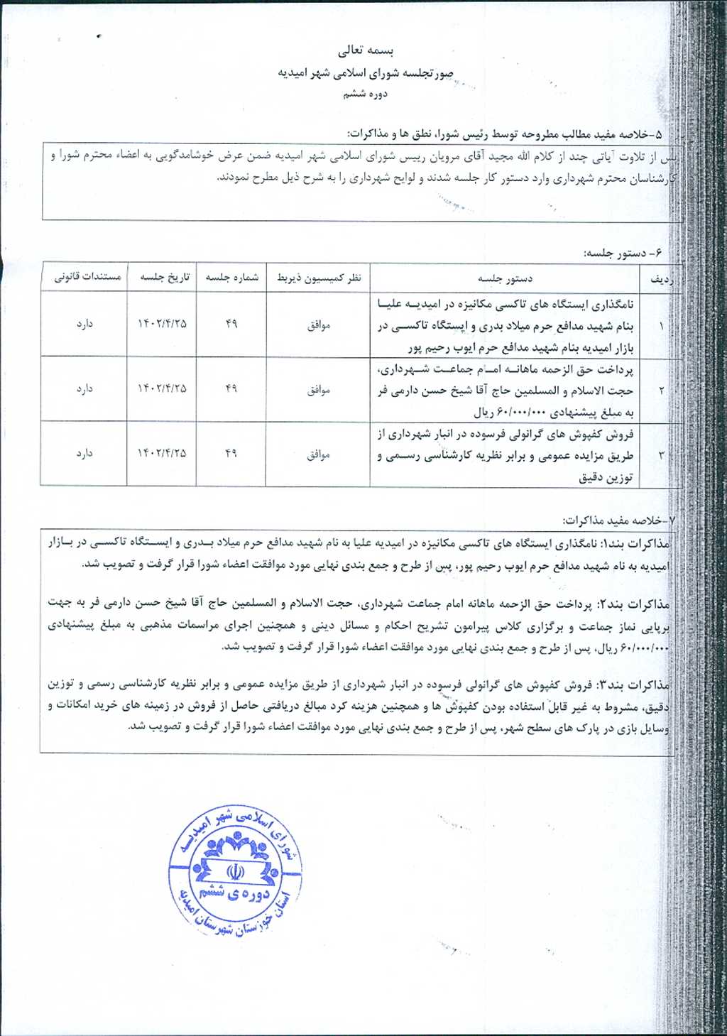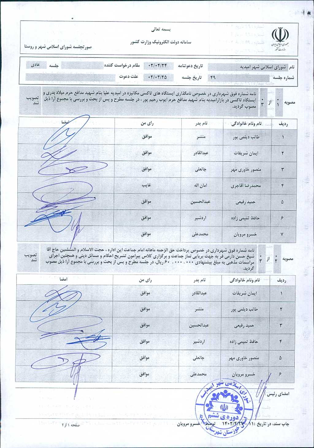 گزارش جلسه شماره ۴۹ مورخ ۱۴۰۲/۰۴/۲۵ شورای اسلامی شهر امیدیه