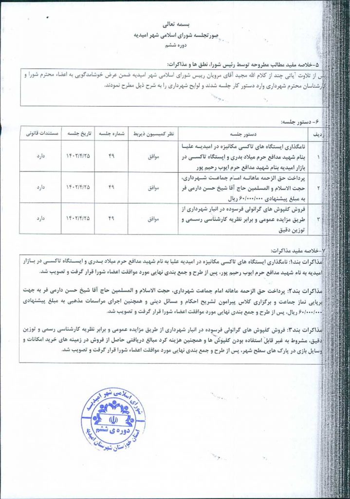گزارش جلسه شماره ۴۹ شورای اسلامی شهر امیدیه